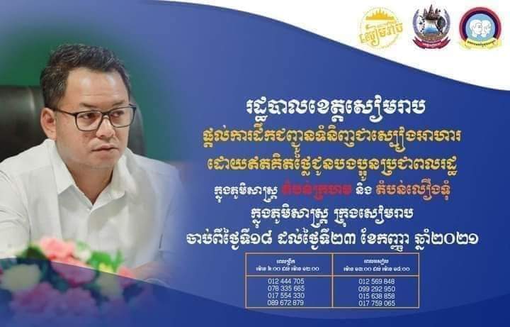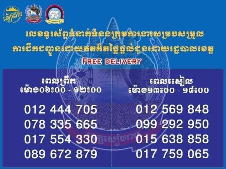 លេខទូរស័ព្ទសុំការដឹកជញ្ជូនទំនិញជាស្បៀងអាហារឥតគិតថ្លៃ សូមមើលក្នុងតារាងខាងក្រោមនេះ ។